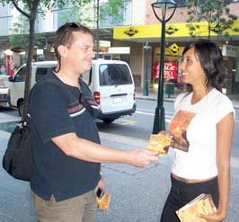 | Emma and Alexus of Results Media handing out samplers of Roar of the Lion outside Flinders Street Station in Melbourne: | |