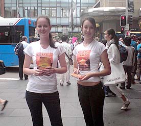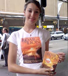 | Here’s Angela and Ruby distributing the Roar of the Lion Book Samplers in Brisbane on Thursday 5th April | |